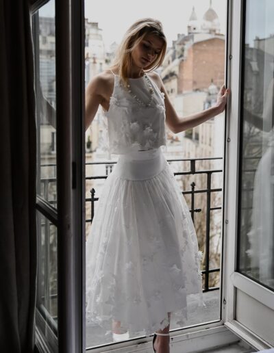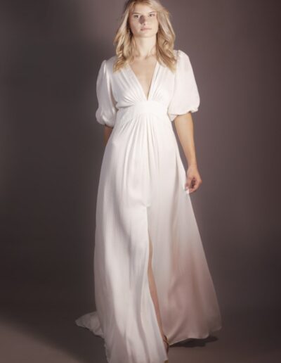 Soucieuse d’offrir une qualité irréprochable, elle collabore avec des artisans exclusivement français et produit toutes ses robes entre Rennes et Paris.